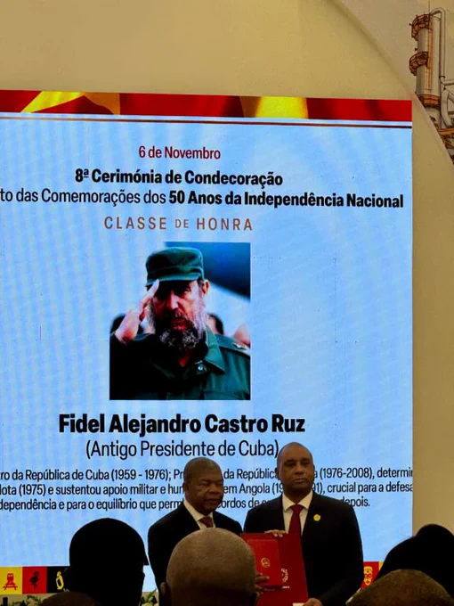 En ceremonia encabezada por el presidente de Angola, João Manuel Gonçalves Lourenço, fueron entregadas medallas de la clase “Honor” al Comandante en Jefe Fidel Castro Ruz y al General de Ejército Raúl Castro Ruz.