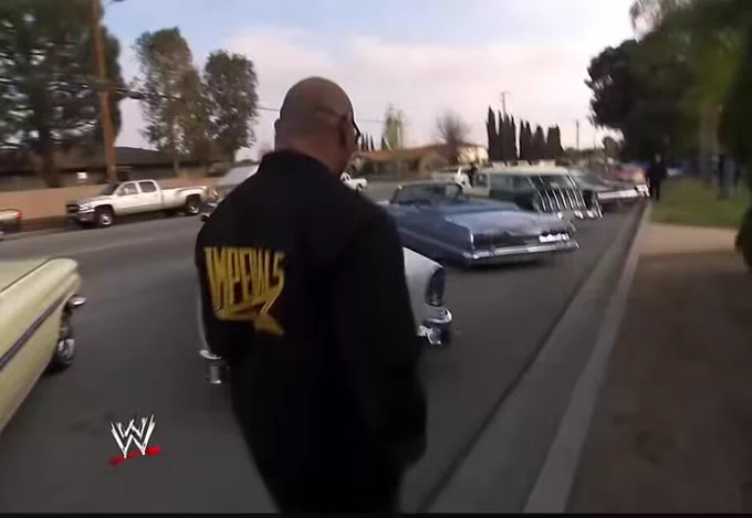 Batista shows off his Chevy Impala lowrider he bought as a tribute for his friend Eddie Guerrero ❤️