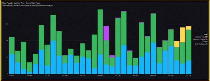 55K+ plays across all their Claws, over $2.5 million in gross income (+96% from previous month), over 250 new wallets joined in to play the Claw for the first time in October... and November is already tracking higher