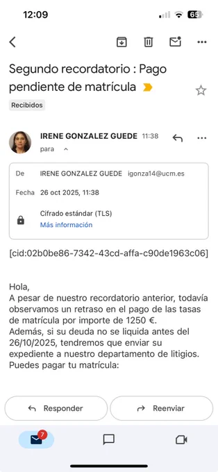 Alumnos de la @ucc_complutense: están llegando correos fraudulentos. Borradlos sin más, a no ser que queráis que Jiaqi Chen se pegue unas vacaciones a vuestra costa.