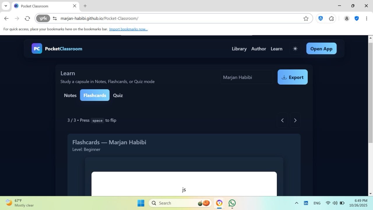 🚀 Excited to share my final project! 🎉 After months of hard work, it’s finally complete! 💻🔍 Introducing Pocket Classroom a new way to enhance learning!