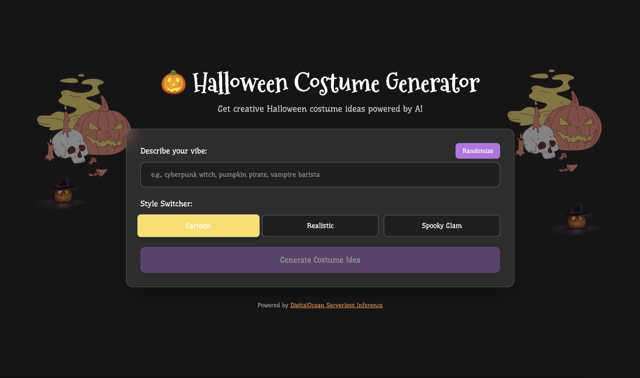 Generate your Halloween costumes and share below 🎃 sea-turtle-app-8ynsl.ondigit…