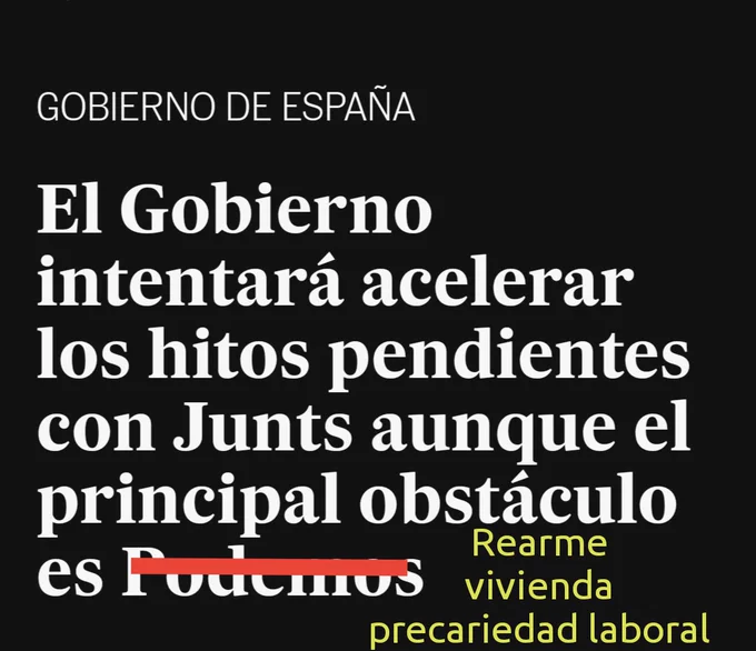 Al Gobierno de España no le va a tumbar la gestión aritmética en el Congreso. Le va a tumbar el precio de la vivienda, el precio de los alimentos, el precio de la energía, la complicidad con un genocidio, la calidad paupérrima en el empleo