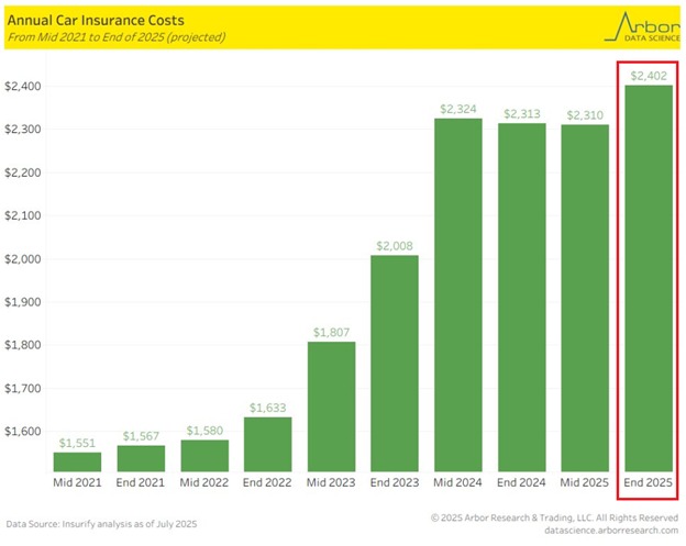Average annual premiums are expected to rise +4% by the end of 2025 to a record $2,402.