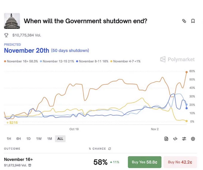 The US government shutdown is now expected to last through November 18th.