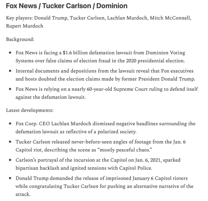 The newsletter now includes the top words being used on each side of the media for the top three stories. For example, today’s top story is Fox News. You’ll see that the left is focusing more on the Dominion lawsuit, while the right is focusing more on January 6th footage.