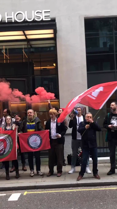 Massive protests erupt outside Take-Two’s London office following Rockstar’s alleged firing of 31 staff to crush union efforts. Some signs say: