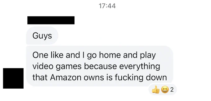 did not have "people waking up sweating because their mattress cover saas runs on AWS" on my bingo card for this year but hey