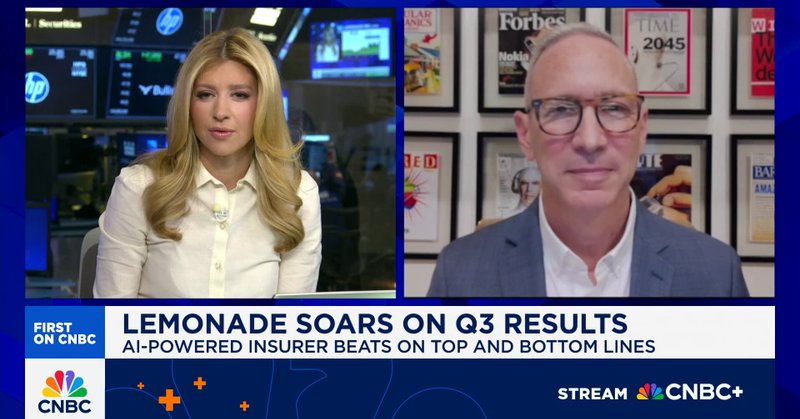Shares of AI-powered insurer Lemonade are surging after a third quarter beat. CEO Daniel Schreiber joins CNBC's 'Squawk on the Street' to discuss.
