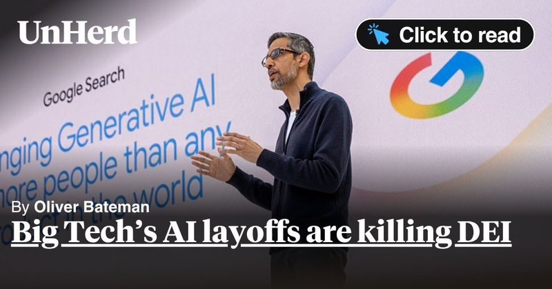 My latest for @unherd: the AI-themed layoffs (AI as the pretense for all the cuts, at a minimum) are coming for everyone, but they started with DEI. Here’s some insider tea (HR research is my day job) as to why