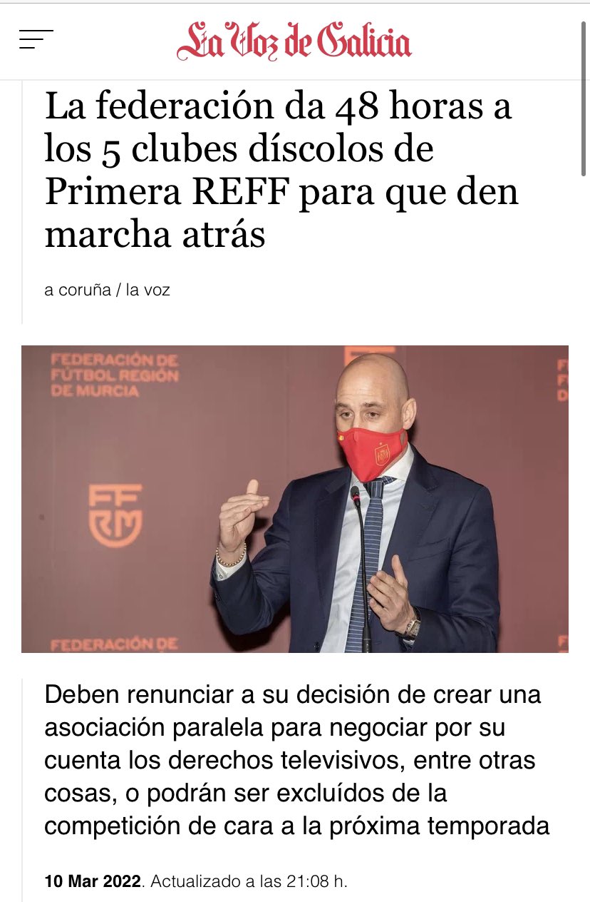 profesionalización de la competición ya lo hizo @LaLiga, @Primera_RFEF tendría que copiarlo y si no tiene capacidad o recursos apartarse cuanto antes.
