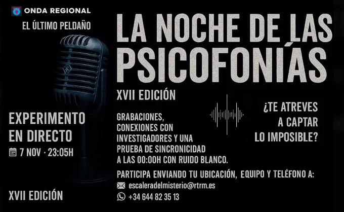 Por fin estamos a día 7 de noviembre, fecha muy esperada para escuchar en la sintonía de @ORMurcia@elultimopeldano en un programa muy especial dedicado a la XVII NOCHE DE LAS PSICOFONÍAS.