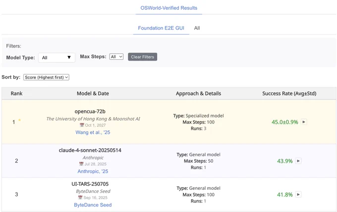 - Together We're There: The 80% Breakthrough: Collectively, 27 models solve 78.86% of OSWorld tasks—no single model comes close, but together they crack nearly 80%. This reveals massive potential for ensemble approaches and RL systems that can learn from diverse model behaviors.