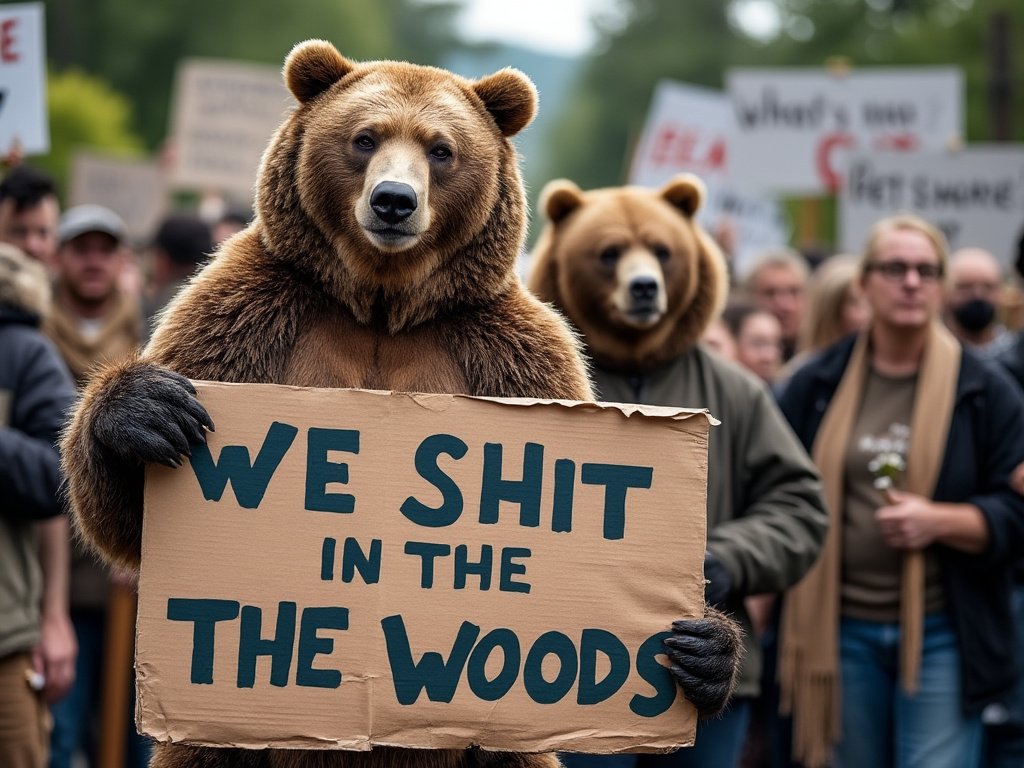 'Anyone else sick and tired of those dumbasses with their "do bears shit in the woods?" Guess what - sometimes I shit on a sidewalk. Sometimes I shit in this very river! So maybe get to know an actual bear, Karen, and stop fucking stereotyping us.'