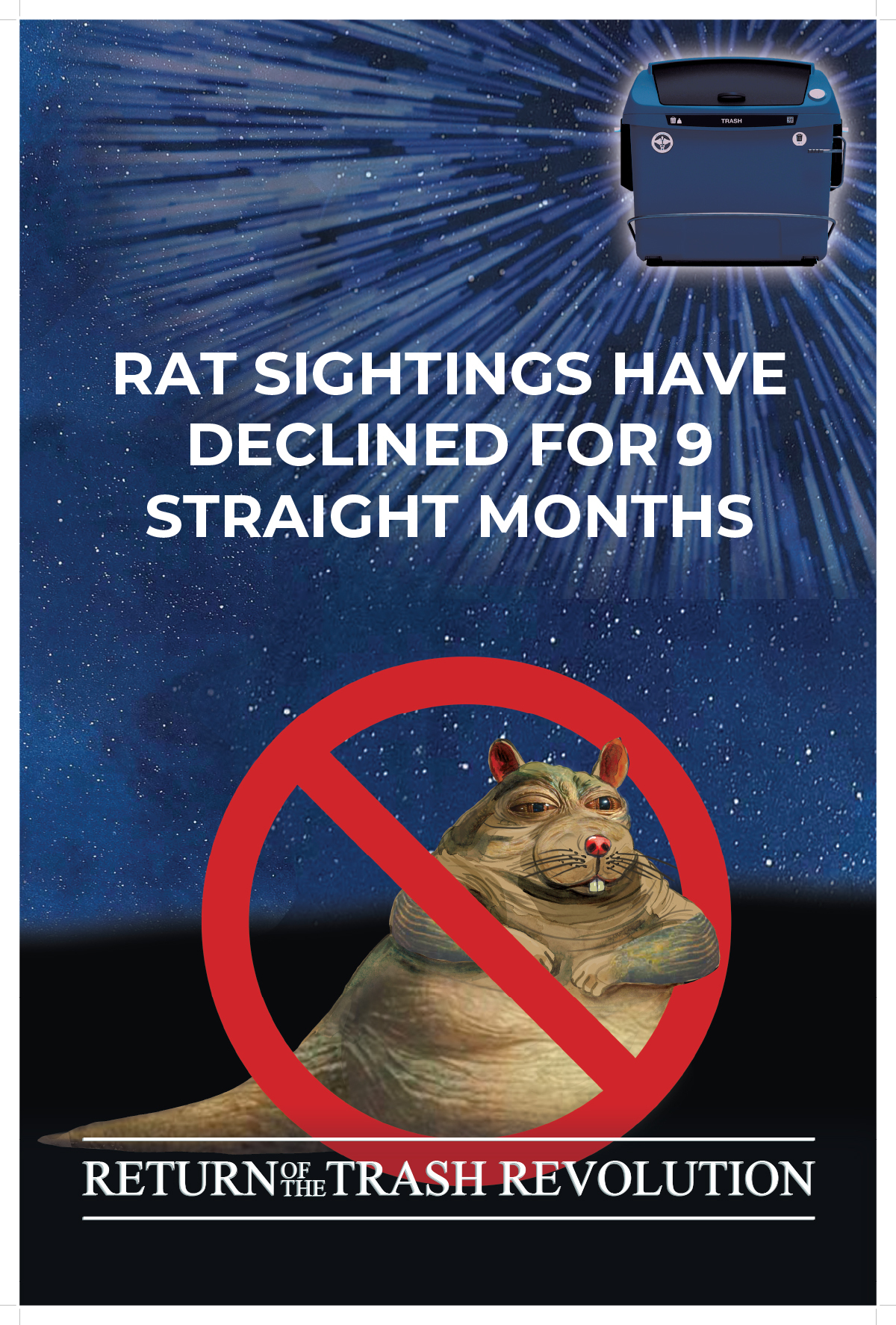 Our administration came up with a revolutionary idea that no administration has come up with before: putting trash in lidded containers! Our Empire Bins are striking back because the rats don't run this city — we do.