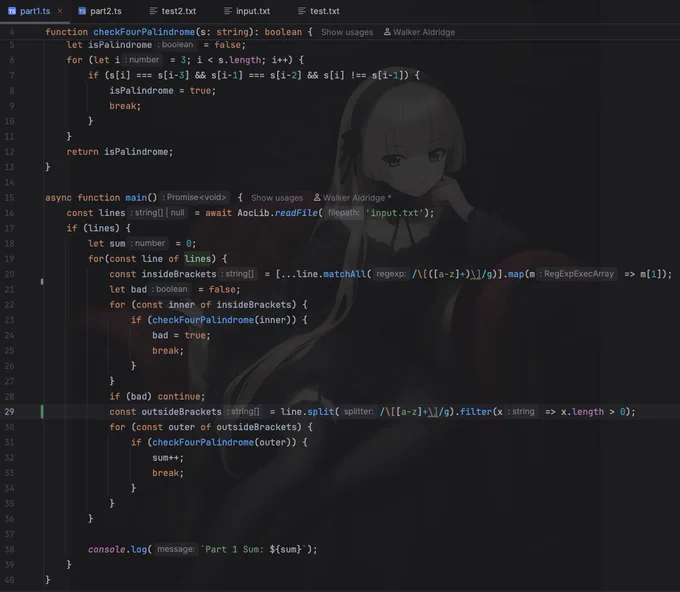 For the AOC warmup code I wrote last night I moved a second line split on day 1 to only happen if it was needed, and removed a redundant loop in day 2.