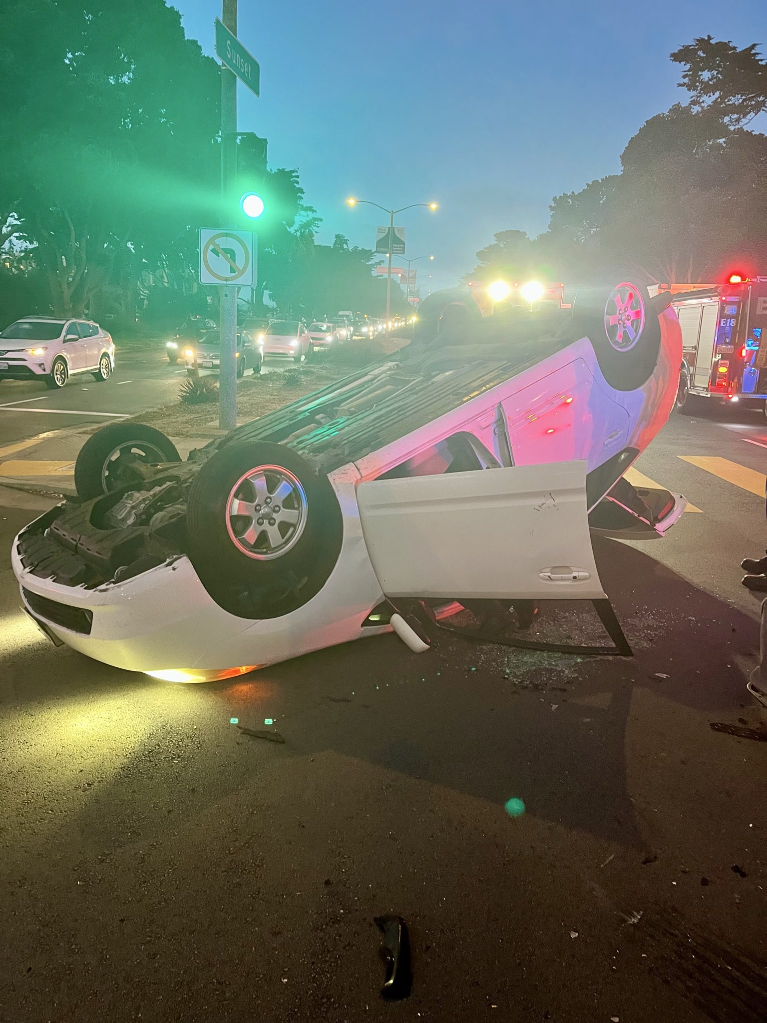 1/ This Monday in SF, a driver blew a red light at high speed, slammed into and flipped our car.