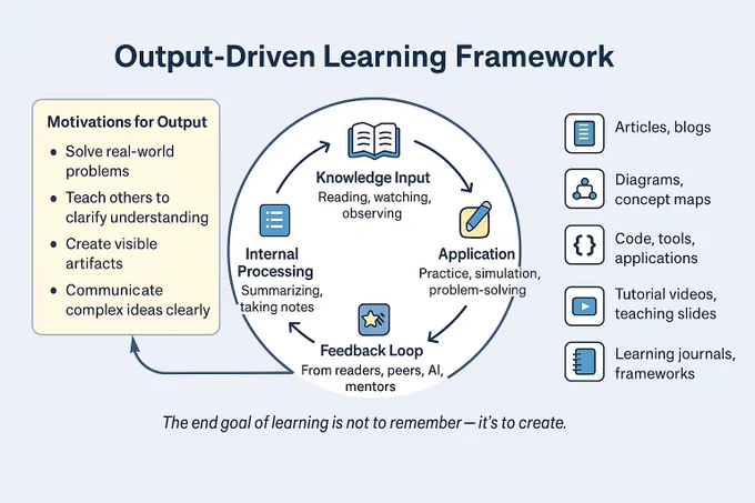 很多人说大模型有幻觉,其实人的幻觉更大,总是自己觉得自己会了,其实并不会,所以就需要输出来验证,倒逼学习质量。