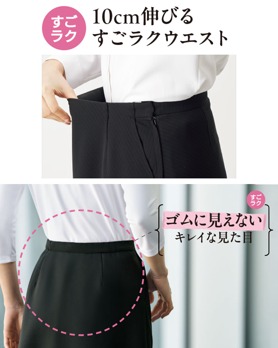 ”スカパン🙆♀️】 どこから見てもスカート見えなのに、実はキュロットで安心感👌 ウエストは10cm伸びる「すごラク」仕様で、長時間の着用も快適✨ ▶GCUL-2564-B6