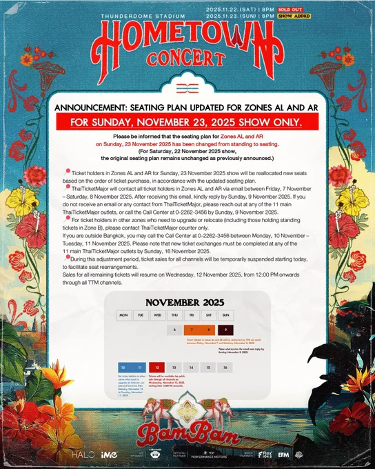 ทั้งนี้หากท่านไม่ได้รับอีเมล หรือไม่ได้รับการติดต่อจากทางไทยทิคเก็ตเมเจอร์ สามารถติดต่อเพิ่มเติมได้ที่บูธไทยทิคเก็ตเมเจอร์ 11 สาขาหลัก หรือ Call center 02-262-3456 ภายในวันอาทิตย์ที่ 9 พฤศจิกายน 2568 เท่านั้น D-13 HOMETOWN CONCERT #BamBam #뱀뱀 @BamBam1A @BAMBAMxBAMMIE