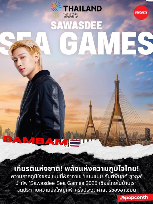 🔴 เกียรติแห่งชาติ! พลังแห่งความภูมิใจไทย 🐍🇹🇭 ความภาคภูมิใจของแบมมี่ & อากาเซ่ "แบมแบม" นำทัพ 'Sawasdee Sea Games 2025 เชียร์ไทยในบ้านเรา' จุดประกายความยิ่งใหญ่กีฬาครั้งประวัติศาสตร์ของอาเซียน 🏅 #SAWASDEESEAGAMES2025xBamBam #BamBam #뱀뱀 ------------------------------- ศิลปินหนุ่มระดับโลก 'แบมแบม กันต์พิมุกต์ ภูวกุล' ชวนคนไทย เชียร์คนไทย ที่เมืองไทย 🇹🇭 เตรียมส่งเสียง “สวัสดีซีเกมส์” ไปทั่วประเทศ กับมหกรรมกีฬาซีเกมส์ ครั้งที่ 33 Sawasdee SEA Games 2025 ศึกกีฬาครั้งยิ่งใหญ่แห่งความภูมิภาค ที่ไทยรับหน้าที่เจ้าภาพ ระหว่างวันที่ 9–20 ธันวาคม 2568 ณ กรุงเทพมหานคร ชลบุรี และสงขลา เตรียมตัวให้พร้อม! ส่งเสียงเชียร์ไทยดังสนั่นจากทุกมุมทั่วประเทศ ก้าวสู่ความยิ่งใหญ่ไปด้วยกันในบ้านของเรา!