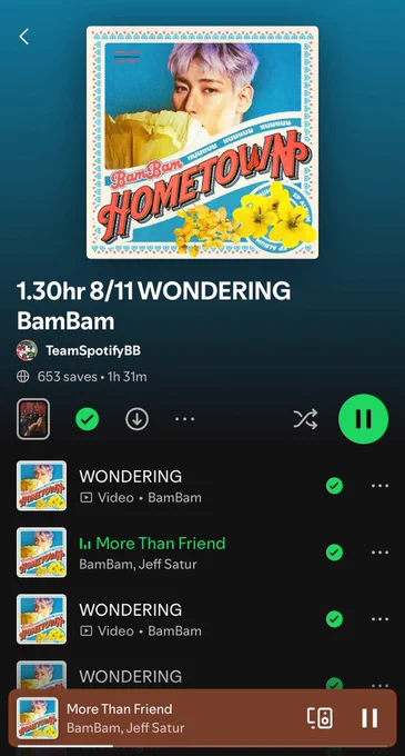 ชวนทุกคนฟังเพลงผ่าน Spotify ด้วยกันนะคะ เช้านี้ BamBamBooster ยังคงอยู่กับเพลลิสต์ของ Team Spotify ชวนทุกคนฟังเพลงเพิ่มยอดสตรีมด้วยกันน้า ☺️🫶🏻✨ มองหาเพลลิสต์จากทีม Spotify คลิกเลย 🔗 open.spotify.com/user/fzd05d… D-13 HOMETOWN CONCERT #BamBam #뱀뱀 @BamBam1A @BAMBAMxBAMMIE
