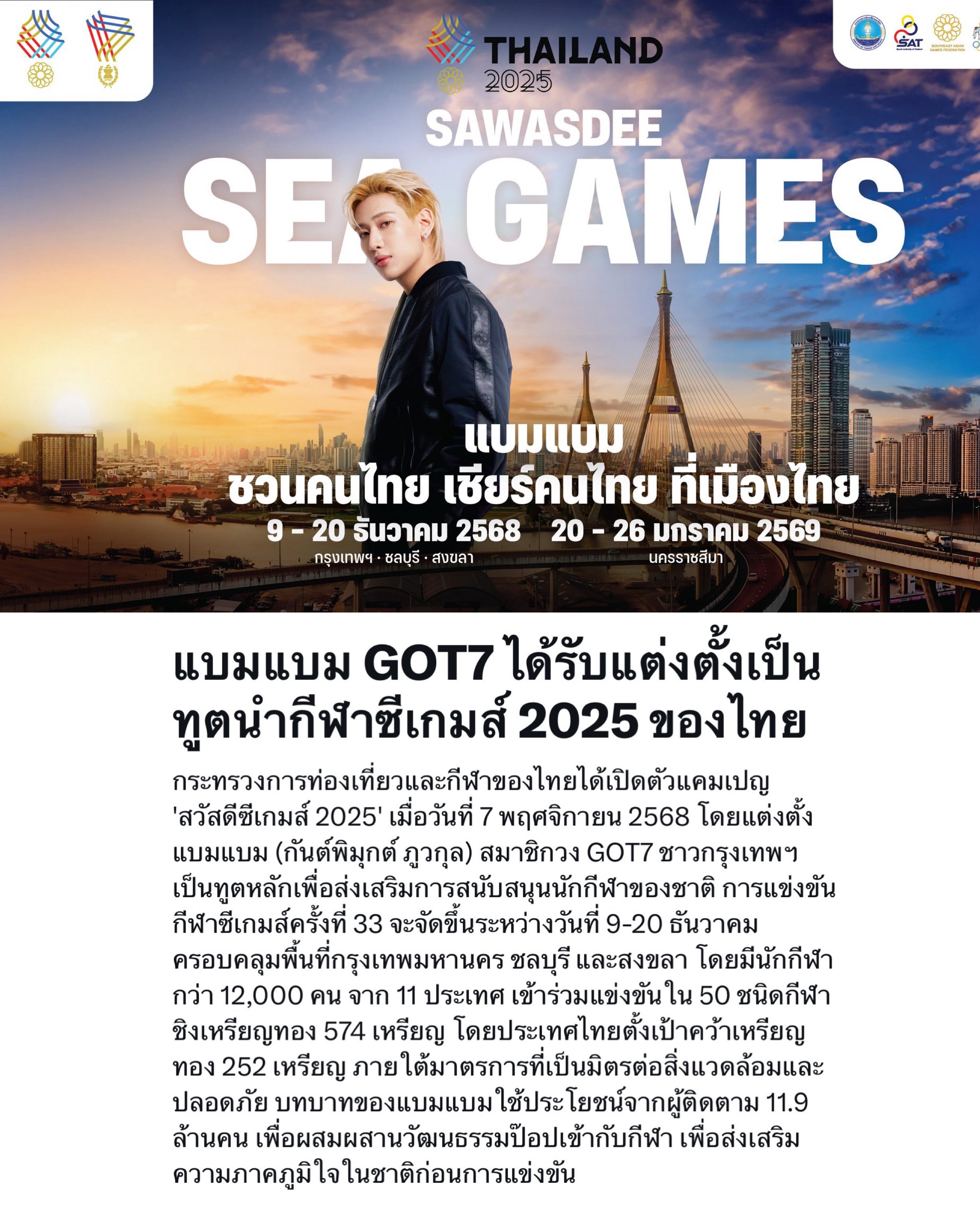 แบมแบม GOT7 ได้รับการแต่งตั้งเป็นทูตนำกีฬาซีเกมส์ 2025 ของไทย 🇹🇭 🎉🎉🎉🎉🎉🎉🎉🎉🎉 #SAWASDEESEAGAMES2025xBamBam #BamBam #뱀뱀 @BamBam1A
