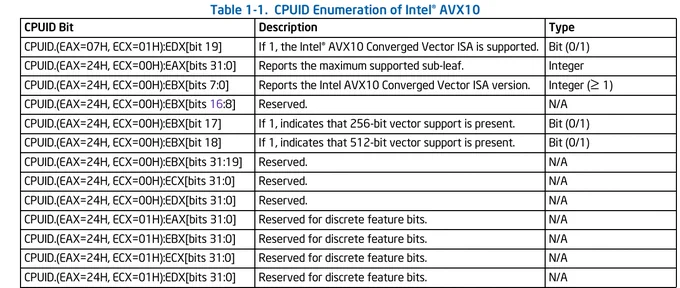 - in #GraniteRapids, #AVX10_1 is introduced with a serious ISA defragmentation, and the old numbering schema is back (e.g. SSE4.2);