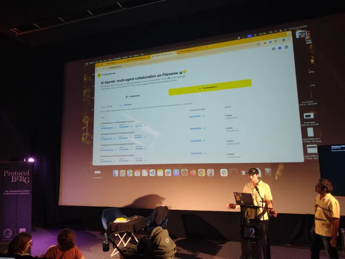 * @0x6b8 from @fileverse is leading a workshop on Ethereum as a shared memory layer for networks of open AI agents. From decentralized storage to account abstraction, it all culminates in a live demo. Happening now in Cinema 9.
