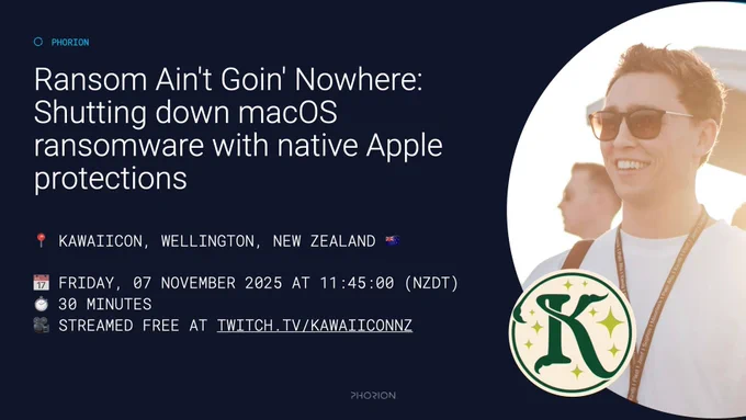 @_calumhall will be speaking at KawaiiCon (prev. KiwiCon!) today talking about Phorion's innovation in ransomware defence and recovery. Where he will be discussing the technical inner workings and some cool tricks to build a comprehensive anti-ransomware solution.