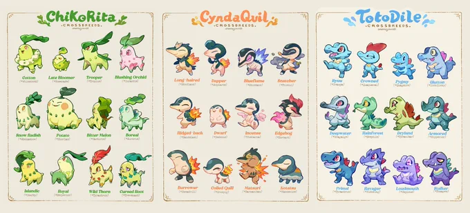 collection of all of my johto crossbreeds 🌿🔥💧