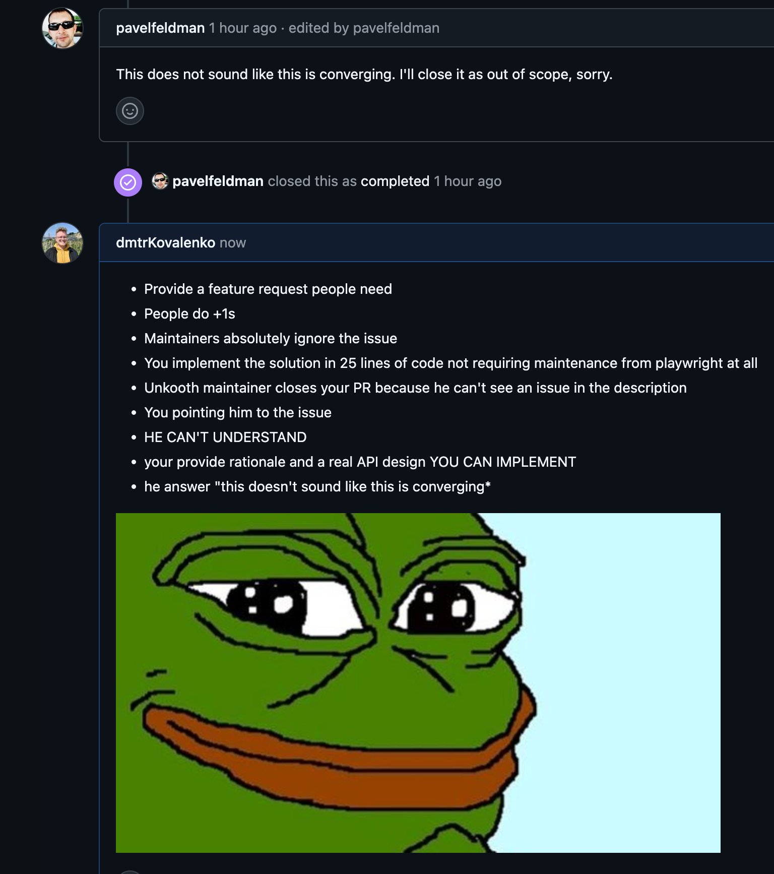 Did I tell you I hate corporates open source maintained by people on 9-5 salaries?