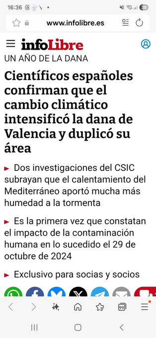 Ahora, científicos españoles esta misma semana confirman que el cambio climático intensificó la dana de Valencia y duplicó su área. Este pasado Jueves 6 de noviembre se han dado a conocer sendos estudios del Centro de Investigaciones sobre Desertificación (CIDE-CSIC) y del Instituto de Geociencias (IGEO-CSIC), que confirman los trabajos anteriores citados.