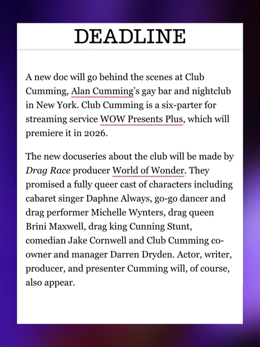 @worldofwonder, Club Cumming will fully queer cast of characters: